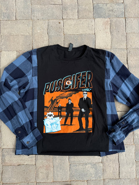 Mens Size L with Large Flannel sleeves, fits women’s XS-L depending on desired fit